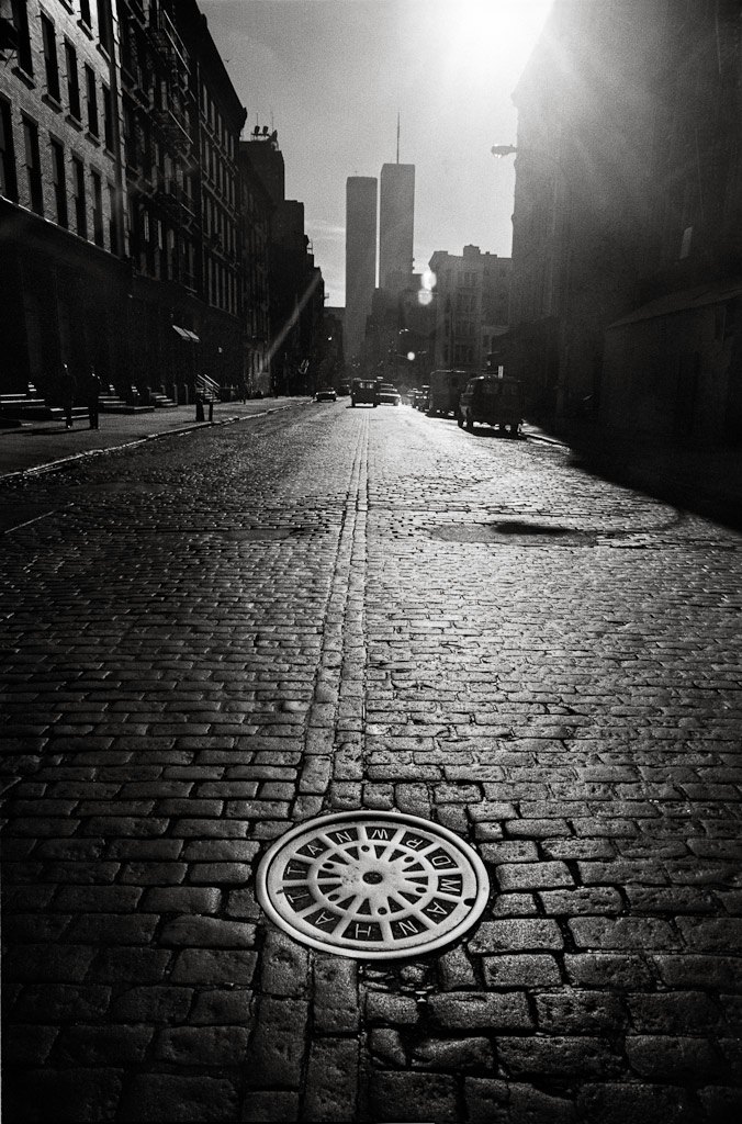 Kurz bevor ich das zweite Mal hinüberfuhr, begegnete ich dem Fotografen Walter Schels, der mir seine Aufnahmen von New Yorker Kanaldeckeln zeigte. Noch unter dem Eindruck dieser Bilder, begann ich an Ort und Stelle auf die erstaunliche Mannigfaltigkeit und grafisch-plastische Schönheit dieser gusseisernen Gebilde zu achten. Schnell wurde aus dem Interesse eine Passion, die den Blick von Häusern und Menschen ablenkte und hinunterzog zu diesen Zeugen einer Epoche, da man ein siebzehnstöckiges Gebäude als Weltwunder bestaunte. Millionen und Abermillionen Wagenräder, Autoreifen und Schuhsohlen sind über sie hinweggegangen und haben doch nur ein paar Millimeter ihrer Substanz abwetzen können. Und nicht abzuschätzen ist der Zeitraum, der nötig wäre, um die ihnen eingegossenen Ornamente und Buchstaben schließlich ganz zu tilgen.